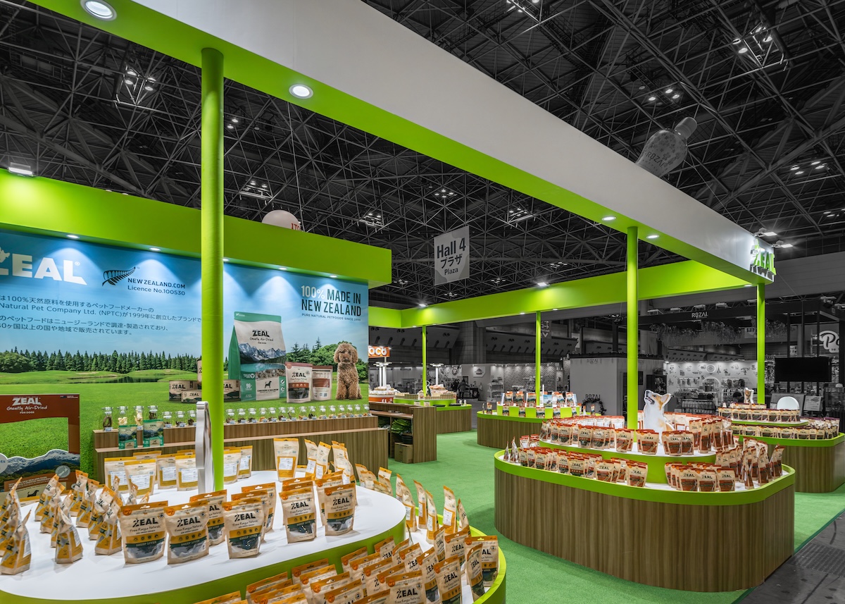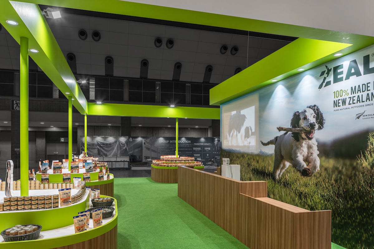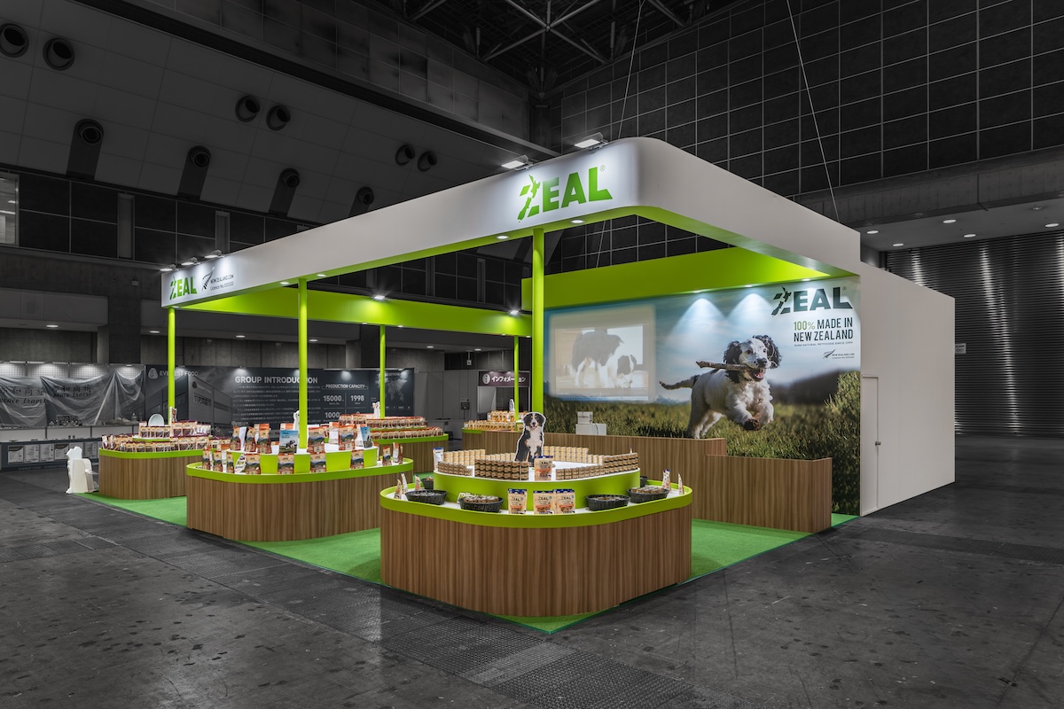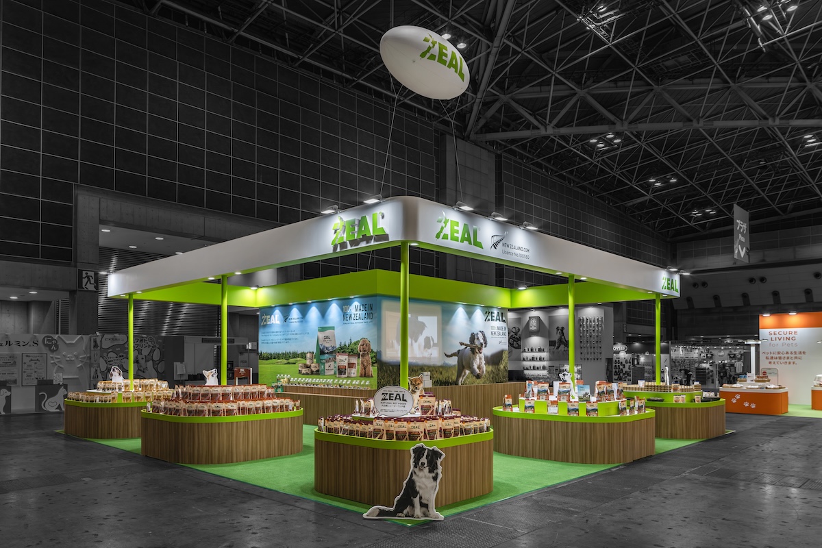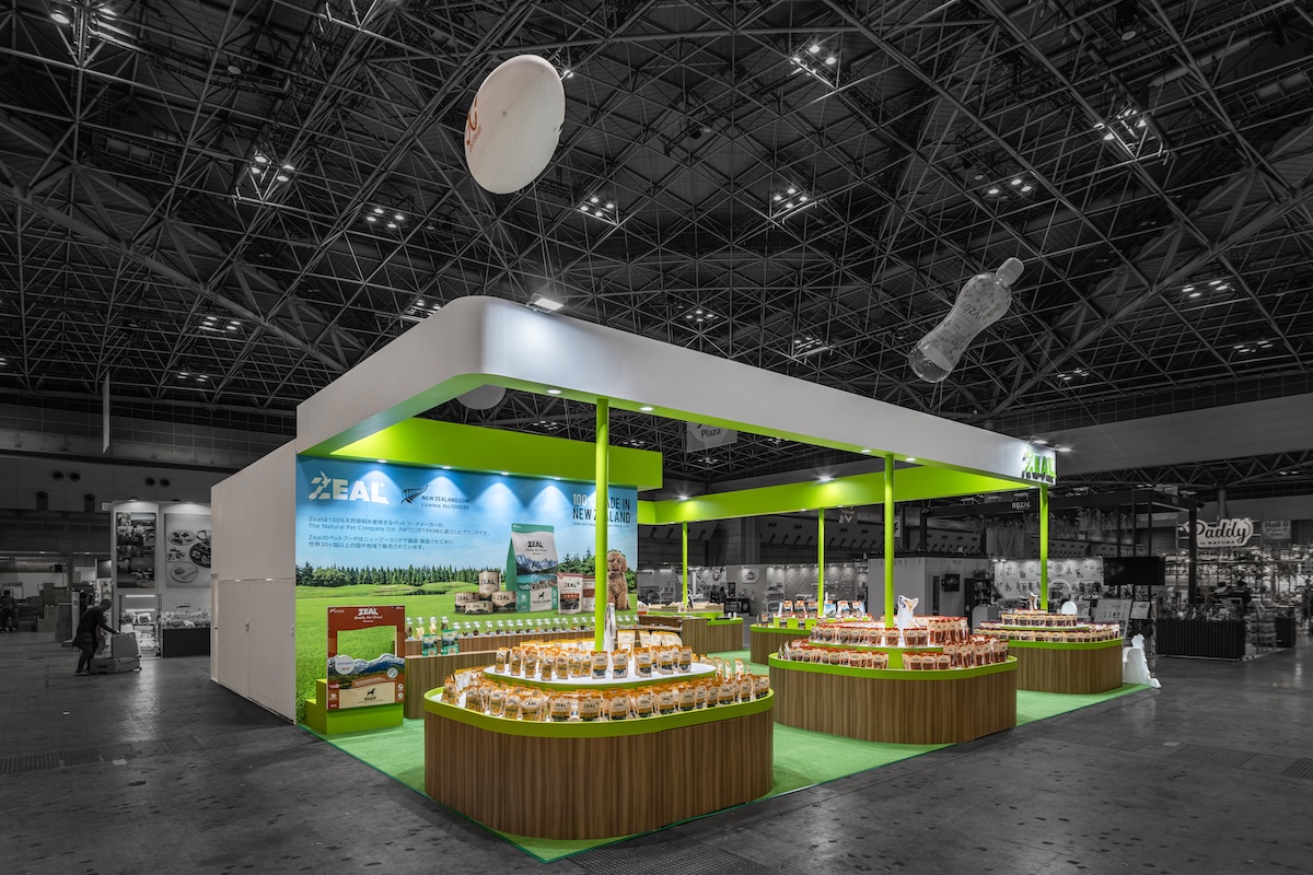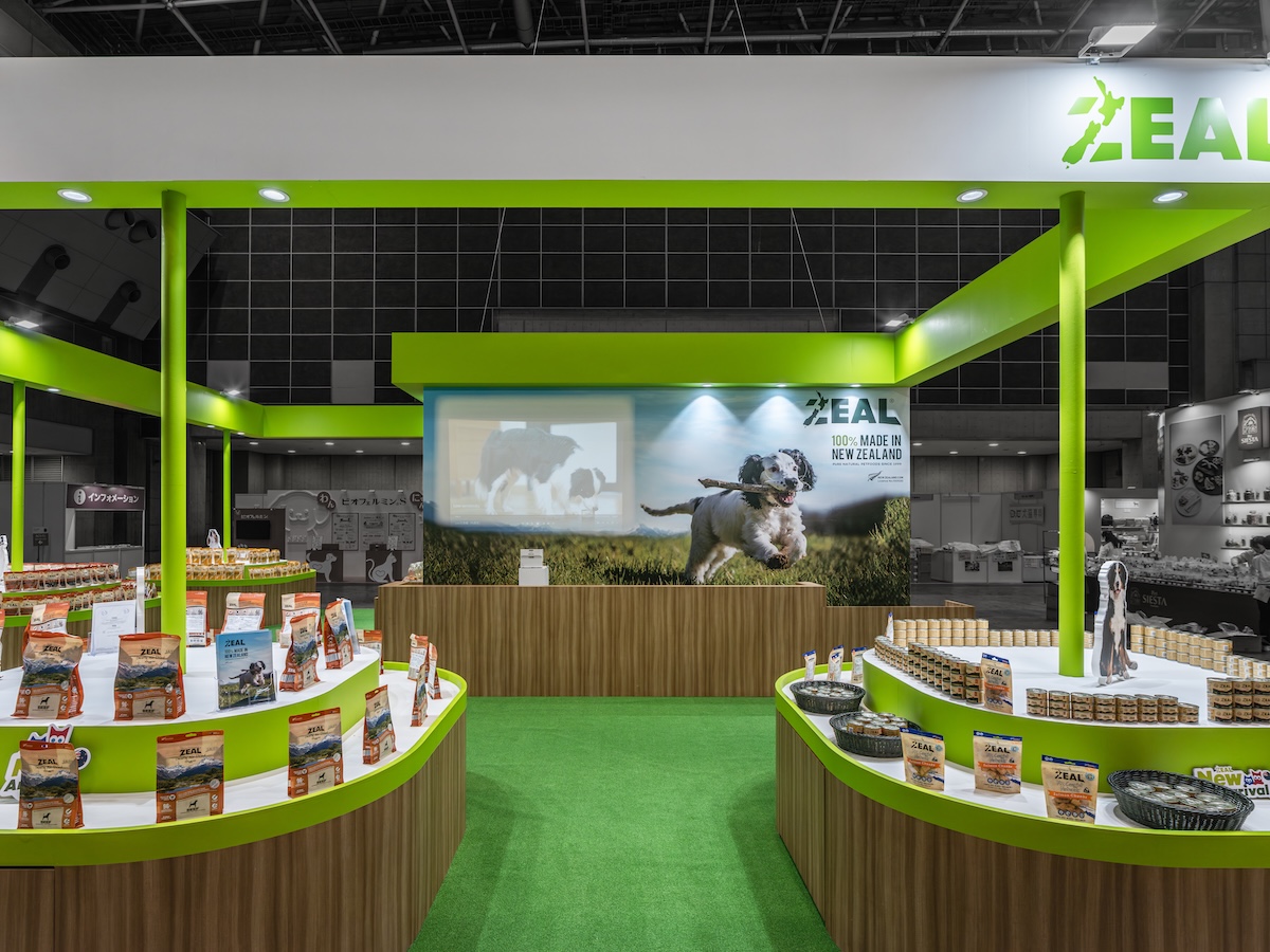 “ZEAL”, the organic pet food brand using 100% natural ingredients, sourced and manufactured entirely in New Zealand. Booth design for Interpets 2025, its first standalone exhibition in Japan.