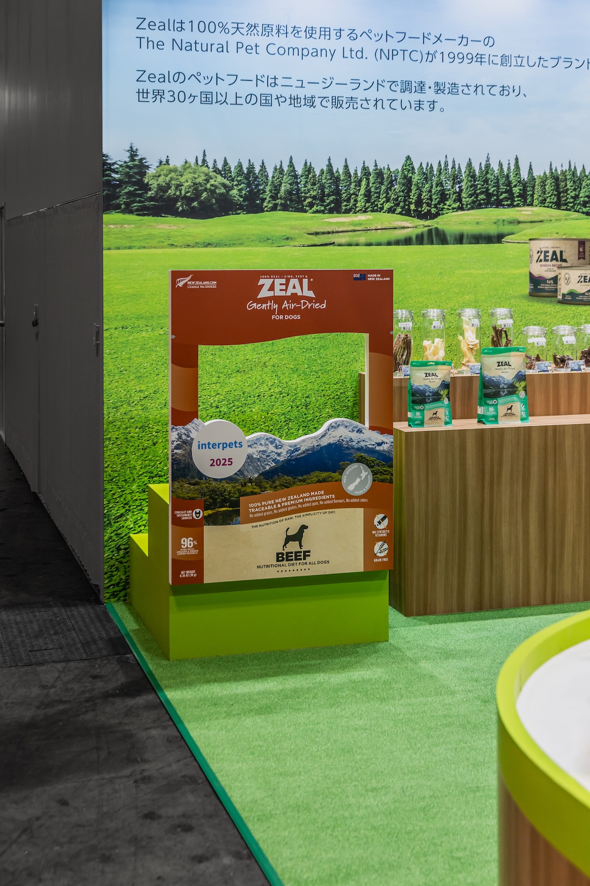 100%天然原料を使用し、 すべてニュージーランドで調達・製造されているオーガニックペットフードブランド”ZEAL”。国内では単独初出展となるInterpets 2025 展示会ブースデザイン。